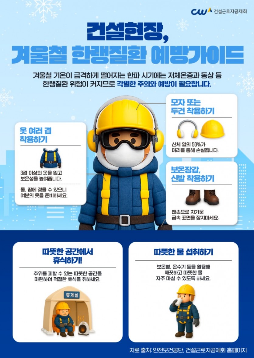 건설 현장은 한파로 더욱 위험해집니다.